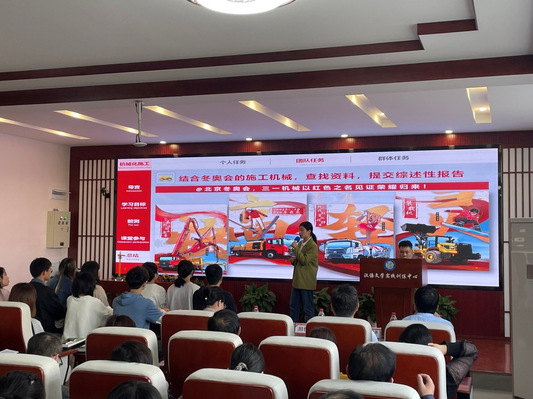 教学示范观摩课主讲老师余琳琳是第二届全国高校教师教学创新大赛三等奖获得者,余老师讲授的课程是《机械化施工》,她运用多媒体课件图文并茂,辅助动画演示,通过启发式教学,由浅入深引发学生思考,多角度多案例分析,将教学目标和课程思政元素实现了完美的结合,学生全神贯注与老师互动,课堂气氛热烈。