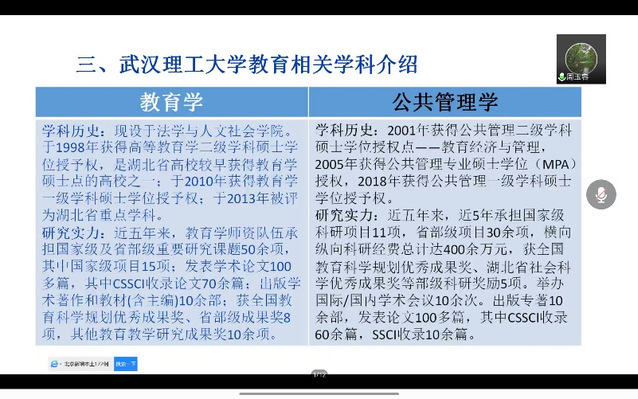 (图为周玉容教授针对武汉理工大学教育相关学科展开介绍)