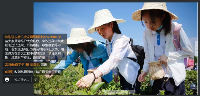 (通讯员 谢梦蝶)11月25日下午,“四有好老师”之“师陶学陶”系列活动--“项目式学习在综合实践活动中运用的探索与思考”专题讲座以线上会议形式顺利开展。武汉市光谷实验中学德育副校长滕斌杰为湖北第二师范学院教育科学学院2022级教育学类师生带来一场精彩绝伦的讲座。2022级教育学类全体同学参加此次讲座,会议由2022级教育学类1班学习委员柴奇玉主持。