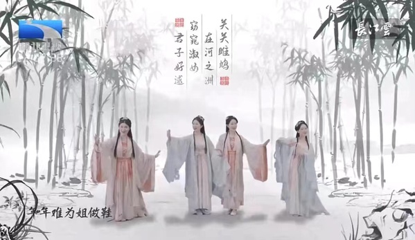 本网讯(通讯员 张珊珊 罗娜)1月22日(正月初一)晚,湖北卫视打破传统春晚演播厅式的节目录制,为观众奉献了一台“不走寻常路,不唱流行曲,纯正原生态”的《荆楚同春——2023年湖北卫视春节联欢晚会》,用最接地气的方式送上一道“绿色原生态、乡情好滋味”的年夜文化大餐。我校艺术学院教授、荆楚非遗传承教育研究中心负责人罗娜携音乐表演专业优秀毕业生谢雨佳在本次春晚节目中倾情演绎房县诗经《关关雎鸠》,吟唱先秦文化的深厚底蕴。
