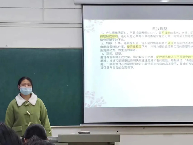 紧接着,教科院心理协会会长廖思嘉向大家讲解有关大学生心理发展的相关知识,她表示:春季由于各种客观原因会引起同学们各种心理上的波动,心理委员要时刻关注同学们的情绪,进行正确的引导和解决。