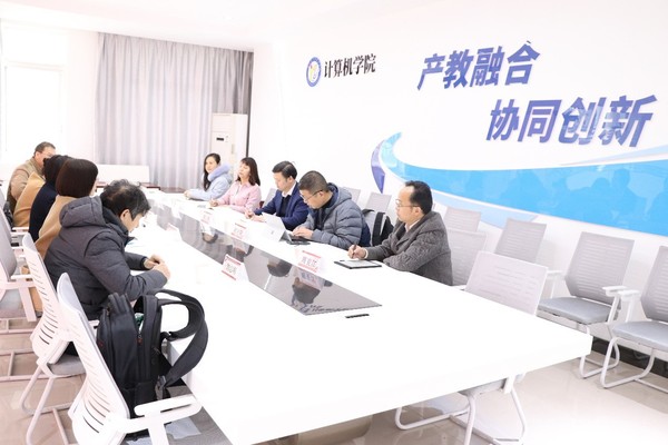 本网讯 (通讯员 任京 钟子奇)为进一步加强高校间的交流与合作,促进人才培养质量提升与学院的可持续发展,3月24日下午,湖南第一师范学院计算机学院党委书记刘立勇一行来到我校计算机学院考察交流。计算机学院党委副书记王敏、院长杨莉、副院长杨鹤、王海军、教育与智能工程系主任刘志明参加考察交流会。