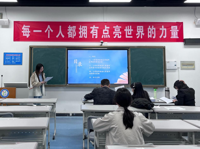 (图为小学教育专业毕业生正在讲解自己的毕业论文)