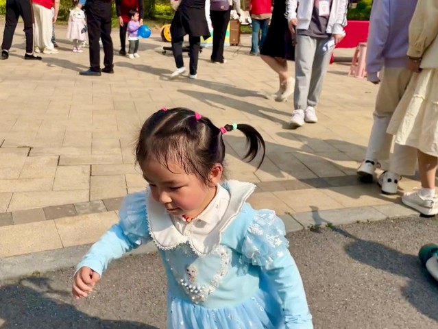 图为孩子开心的玩着踩影子的游戏。通讯员 李诗宇 供图