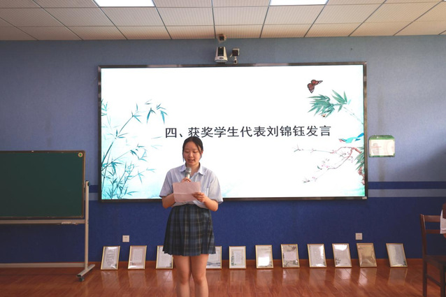 (图为钢笔字特等奖获得者刘锦钰发言)