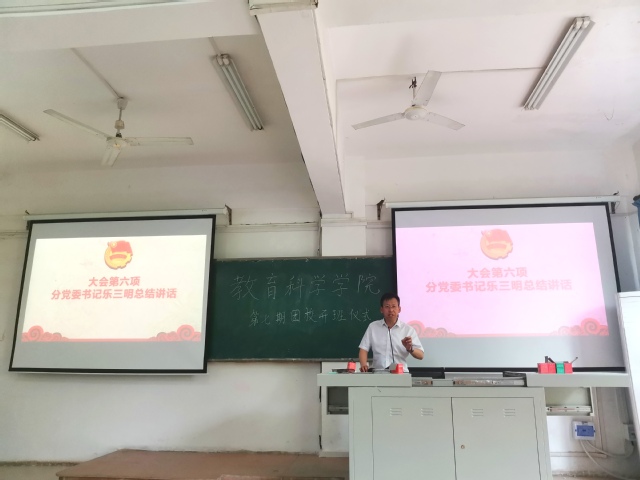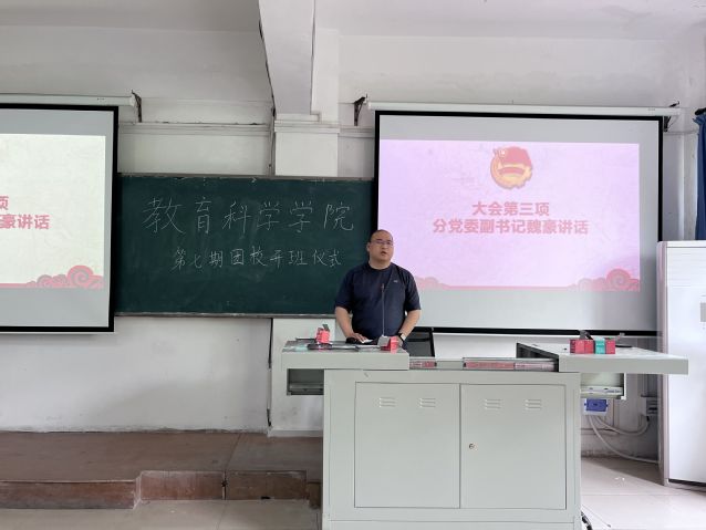(通讯员蔡祎笑) 5月4日中午,教育科学学院(以下简称“教科院”)于5308开展第七期团校开班仪式。教科院分党委书记乐三明、分党委副书记魏豪、分团委副书记唐志强出席本次活动。第七期团校全体成员参与此次活动,22级学前教育1班李沐风主持本次活动。
