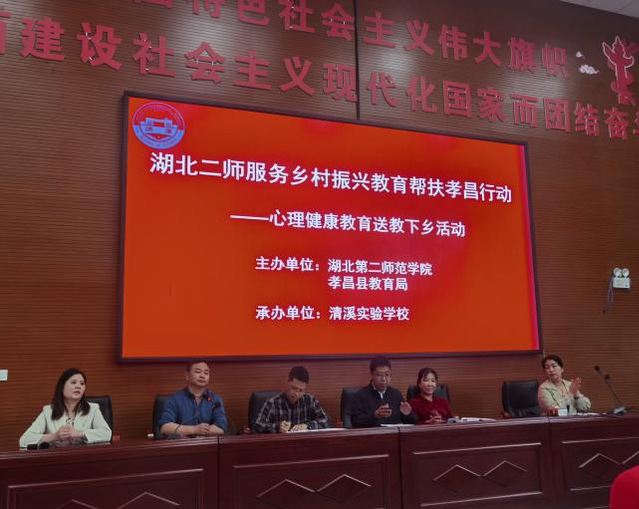 (通讯员 张悦)为贯彻落实中共中央、国务院《关于实施乡村振兴战略的意见》,依据省教育厅“百校联百县——高效服务乡村振兴科技支撑行动计划”、湖北第二师范学院服务乡村振兴教育帮扶孝昌县工作规划,2023年5月7日,由教育科学学院(以下简称“教科院”)与孝感市孝昌县教育局共同主办,开展湖北第二师范学院第二期送教活动。教科院副院长吴贤华、教科院心理学专业负责人范士青、教科院副教授张颖、教科院20级应用心理学张悦师生四人赴孝昌县清溪实验学校开展心理健康讲座和心理辅导课同课异构活动。活动由我校2004级应用心理学专业校友秦菲科长主持,孝昌县教育局副局长刘志高全程参与本次并对活动成功给予了充分肯定。