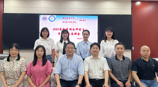 本次答辩组主席为湖北师范大学教育学院院长朱浩教授,答辩组专家成员为我校学科建设办公室(研究生处)处长张炜教授、教育科学学院雷家彬教授、孙利教授以及华中科技大学附属幼儿园向晶老师。出席本次会议的还有:湖北第二师范学院教育科学学院院长张红梅教授,学科建设办公室(研究生处)万润泽副处长以及20、21、22级全体硕士研究生。会议由我校教育科学学院副院长李贤智教授主持。