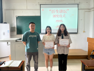 (通讯员 张丽雯)为积极动员学生参加“百生讲坛”活动,增强活动效果,5月30日12时,教育科学学院(以下简称“教科院”)于5408举办“百生讲坛”优秀主讲人颁奖仪式。教科院分团委副书记唐志强及全体参赛选手参与本次颁奖仪式,22级学前教育2班杨若兮担任主持人。