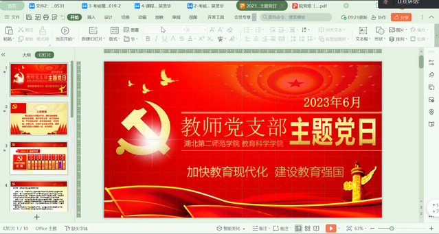 6月20日20:00,教育科学学院(下简称“教科院”)教师第一、第二党支部在线开展6月主题党日学习活动。此次活动的主题为“加快教育现代化,建设教育强国”。教科院教师第二党支部组织委员安莉主持会议,教科院教师第一、第二党支部全体党员参加。