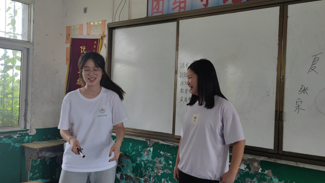 (图为团队志愿者在对当地学生爱好特长进行初步讨论)
