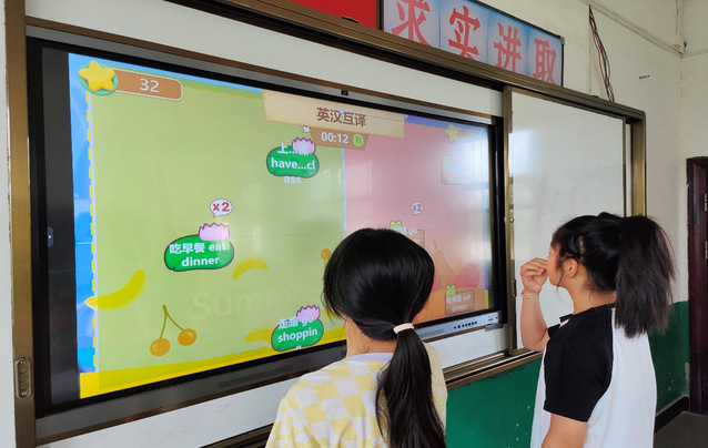 (图为小朋友们进行英语游戏检验单词英汉意思掌握度)
