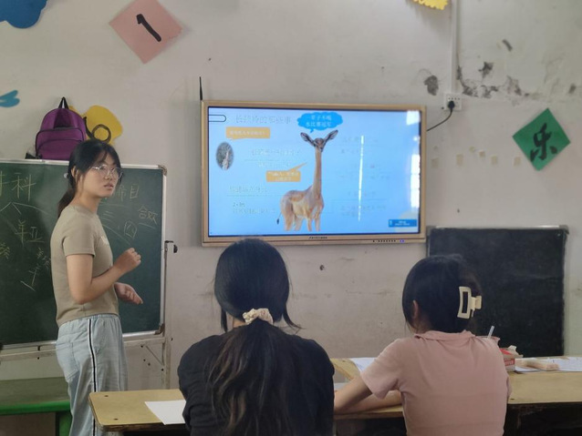 (图为四叶草青年志愿服务队队员为回市小学学生讲授科学课)