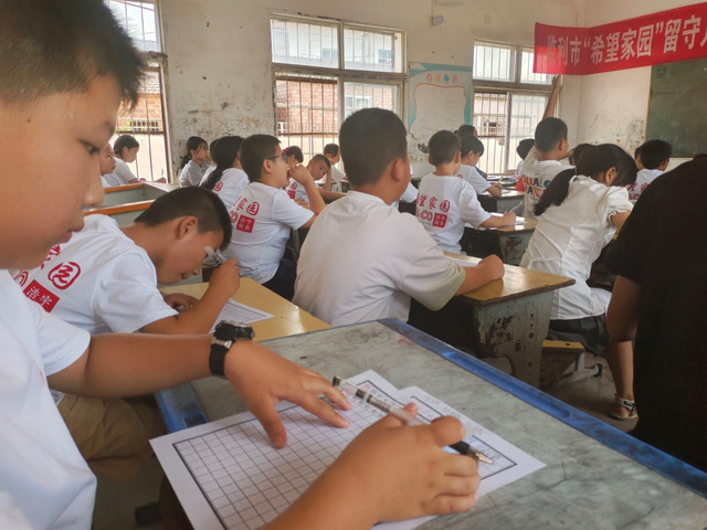 (图为回市小学学生上写字课)