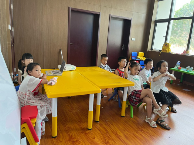 (图为小朋友们正在倾听志愿者老师的讲解)