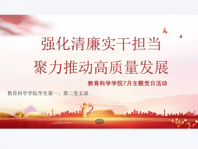 (通讯员 谢梦蝶)为加强党员思想政治教育,进一步增强党员的组织观念和集体荣誉感,7月13日中午,湖北第二师范学院教育科学学院(以下简称“教科院”)于线上开展主题为“强化清廉实干担当,聚力推动高质量发展”的7月党日活动。教科院学生第一、第二党支部成员参与本次活动。20级教育学1班韩亚楠主持本次活动。