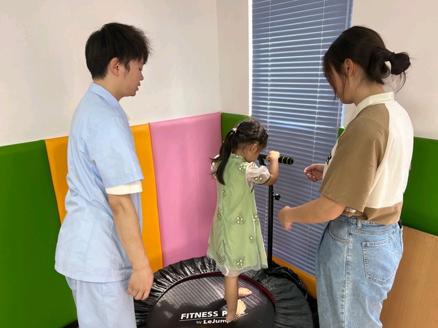 (图为志愿者协助残联康复中心老师照看小朋友)