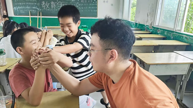 (通讯员 李文冠)为助力乡村教育,关爱留守儿童成长。今年七月,湖北第二师范学院“四叶草”青年志愿服务队(以下简称服务队)再次开启三下乡之旅。这次服务队来到湖北省监利市,走进乡村,为呵护“祖国的花朵”开展支教活动。其中,服务队桃花小学分队于7月7日正式开课。在支教的第一天,志愿者们备课授课,给孩子们传授知识的同时,也给提高了他们的动手能力。在此期间,志愿者们在课上与孩子们互动,开展“趣味课堂”,课后同孩子们一起画画,唱歌,做游戏,欢快的气氛洋溢在整个桃花小学。对于孩子们而言,他们收获了陪伴和快乐;对于志愿者而言,他们体会到了乡村的艰苦条件,也收获了来自孩子们童真的爱。