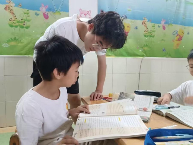 (图为四叶草青年志愿服务队志愿者指导学生暑期作业)