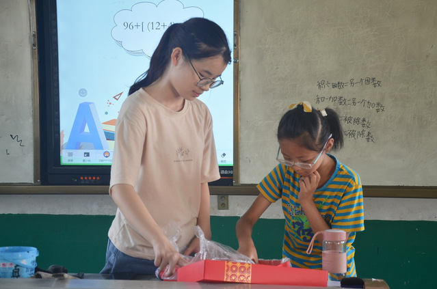 (通讯员李文冠)在这火热的七月,湖北第二师范学院“四叶草”青年志愿服务队利用暑假,脱离舒适的生活圈,带着青年人特有的蓬勃朝气,来到湖北省监利市,进行“三下乡”社会实践活动。自7月6日正式开班以来,今天是“四叶草”志愿服务队第二小队支教生活的第七天,他们在监利市分盐镇桃花中心小学已经陪伴这里的留守儿童度过了一段美好的时光。“四叶草”志愿者给他们传授知识的同时,也给他们带去了欢乐。自支教第一天起,孩子们一天比一天活泼,眼神一天比一天清澈。这一切都源自“四叶草”志愿者们持之以恒的努力和对孩子们无私的爱。今天,志愿者们再次为孩子们开展了一些有趣的课程。其中志愿者小夏老师为孩子们开设了一节科学课,让孩子们认识蒸发和凝固的物理现象;志愿者小肖老师带高年级孩子们上了一节文学鉴赏课,和孩子们一起赏析中国优秀的文学作品;志愿者小李老师为孩子们上了一节心理健康课,让孩子们在纸片上写下自己的梦想,并请他们上台大声说出自己的梦想。这些特色课程的开展,有助于培养孩子们求知探索的精神,健全他们的人格,积极乐观地面对未来学习和生活中的挑战。