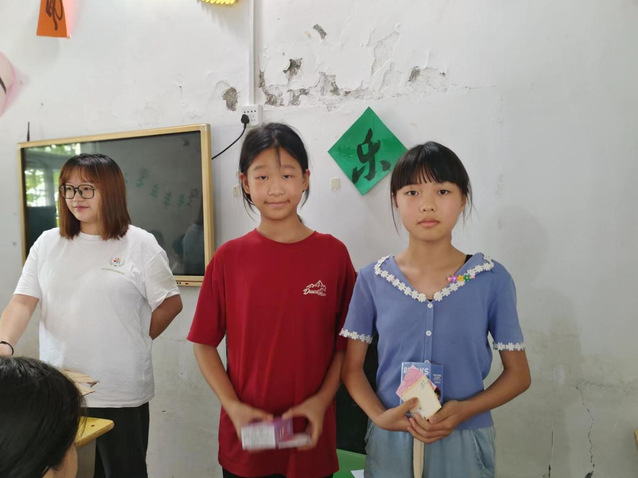 在六年级的班会课上,四叶草青年志愿服务队队员舒琬瑶作为班主任,首先通过抽签的方式,让同学们先后对这一个星期以来的所作所为进行反思,对自己所学进行回顾。同时,同学们也提出了很多四叶草青年志愿服务队队员教学上的不足与不适应,通过与同学们的交流,可以更好的提升四叶草队员的教学方式、方法,三下乡是多方面共同成长之路。之后,小舒老师对本周课堂表现好的同学们颁发了奖品,激励同学们更上一层楼。