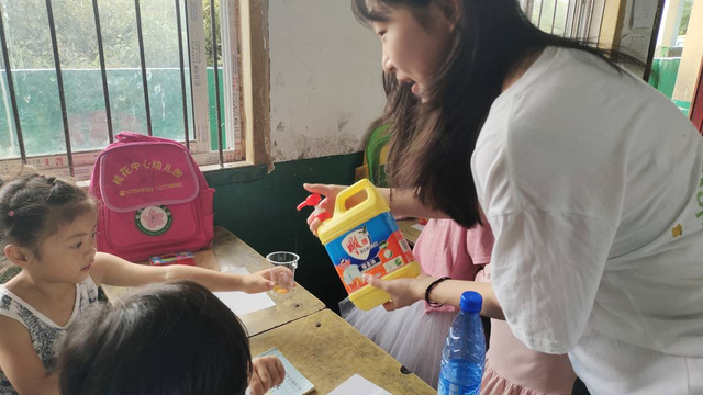 (通讯员 刘雨梦)文化课程的学习对于学生来说至关重要,但是为了促进学生“德智体美劳”全面发展,让学生在实际操作中,掌握整理、裁剪、清洁等技能,也是有效帮助学生提高个人自主能力、生活品质的前提。更为重要的是在实践的过程中帮助学生树立起正确的世界观、人生观、价值观以及一定的审美能力。为了达到以上目的,7月16日湖北第二师范学院四叶草青年志愿服务队于监利市分盐镇桃花小学为学生带来了一堂好玩的泡泡课。在课堂上志愿者拿出准备好的颜料、洗洁精等材料,结合学生生活实际提出问题。学生争相说出自己在生活中知道的洗洁精的用处。在课堂上志愿者为学生讲解泡泡画的制作原理、制作方法、演示制作过程并将自己的作品向学生进行展示。随后学生四人一组正式开始实际动手操作。在操作过程中志愿者走近学生,对学生的操作进行指导。本次活动中志愿者与学生之间相互配合,学生踊跃参与手工活动之中,在活动中锻炼了学生的动手能力以及对于美的欣赏能力。