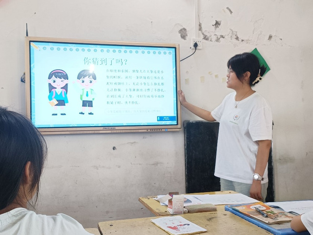 (通讯员 王思颖)7月15日,湖北第二师范学院四叶草青年志愿服务队助残小分队的队员们来到了监利市分盐镇回市小学,在这里开启一天的志愿教学活动。志愿者们站上三尺讲台,与回市小学的小朋友们一起学习了文学常识,认识了时间,深入与留守儿童交流,给予他们温暖和关爱。志愿者们还带来了一堂别开生面的学习习惯养成课,旨在培养小朋友们养成良好的学习和生活习惯。在课堂上,志愿者带领小朋友一起做游戏,活跃气氛,不断拉近与小朋友们的距离。课后,志愿者还给小朋友们赠送了小礼物,主动与小朋友们交流沟通,解决小朋友在学习中遇到的困难。志愿者们用实际行动践行着选择支教的初心。