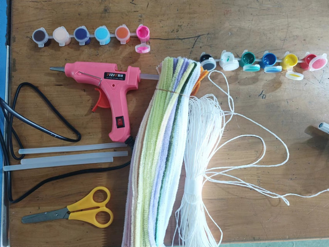 二三年级小朋友们在四叶草青年志愿服务队第一分队志愿者刘安娜的指导下,用刷子为纸杯上色。小朋友们全神贯注地画着,红色、绿色、黄色……纯白的杯身立马变得五彩斑斓了!小朋友们拉着老师激动地展示着自己的成果。小朋友们把自己的“帽子”放在桌子上晾干后,用小剪刀在杯子对称的两侧扎出两个小孔,用棉线穿过小孔系起来形成闭环。志愿者用毛绒扭扭棒和热熔胶为小朋友们的帽子添加了装饰。