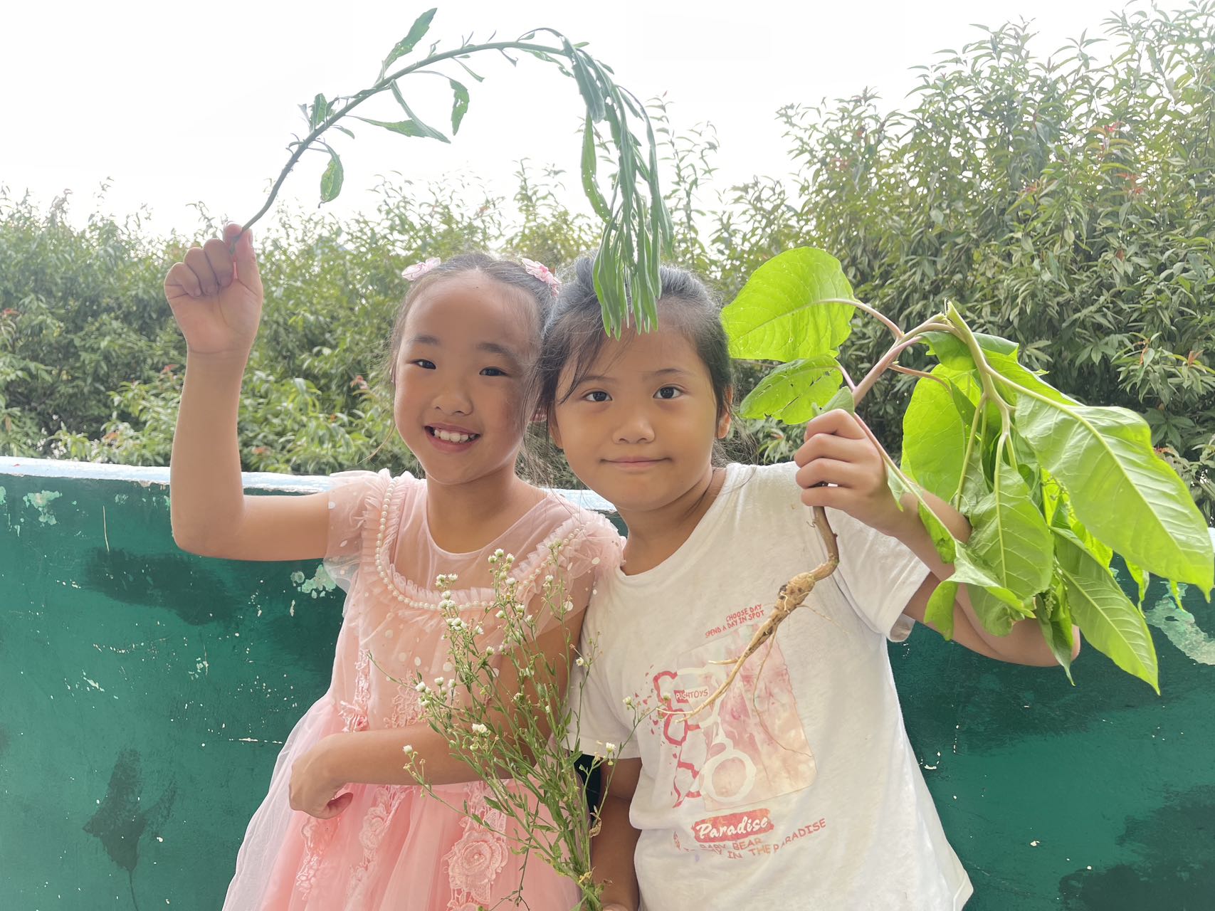 在课程伊始,孩子们在四叶草青年志愿服务队志愿者的带领下,来到了大自然中收集各色各样的花草树木,在途中志愿者一边帮助他们采摘植物,一边帮助他们认识不同种类的花草树木,拓展他们对于植物的知识经验。回到课堂中,志愿者播放各种各样的树叶贴画照片,为他们讲解不同树叶贴在一起的形象特征,丰富孩子们对于树叶贴画的知识经验,激发孩子们对于大自然的兴趣。随后志愿者指导孩子们用粘胶将一片一片小树叶、一朵一朵小花粘在白色的画纸上,在孩子们的画笔的点缀下,花草树木们都被赋予了不一样的生命。大自然对孩子的影响是多方面的,包括身体、智力、情感和社交多方面,在自然中进行艺术教育,让孩子们去感受、在自然中得到滋养,这将是最适合学生的养育方式。