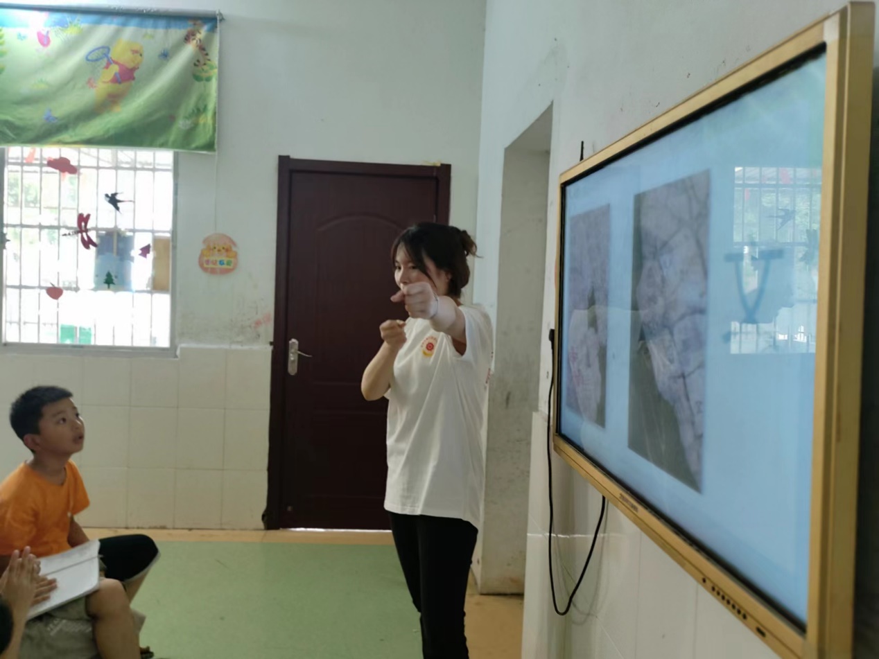 (通讯员 王姝杰)为传承中华传统文化,丰富乡村小学学生知识面,让学生感受甲骨文的魅力,湖北第二师范学院四叶草青年志愿服务队第一分队于7月19日在监利市回市小学开展了一堂丰富多彩的甲骨文课。