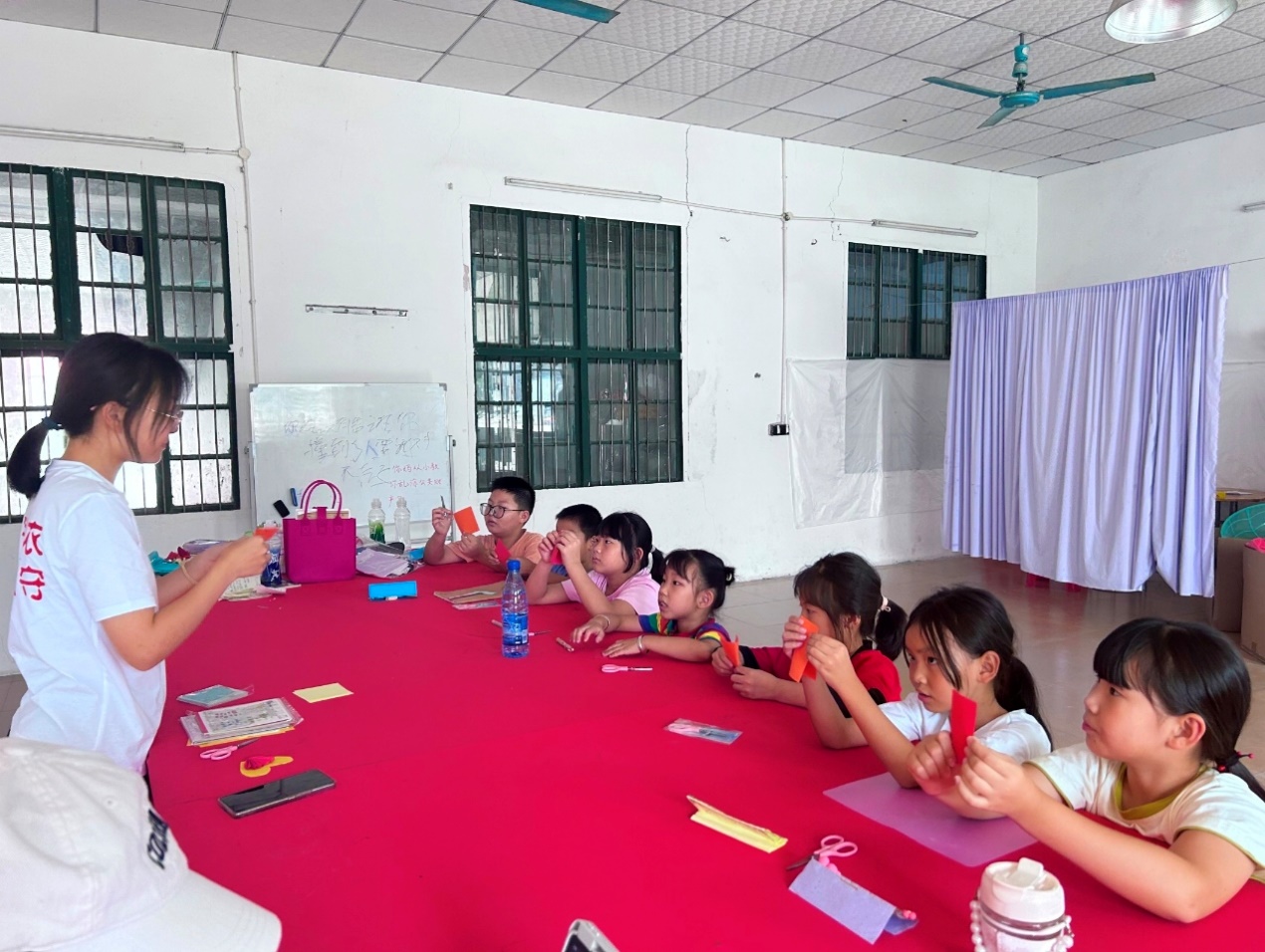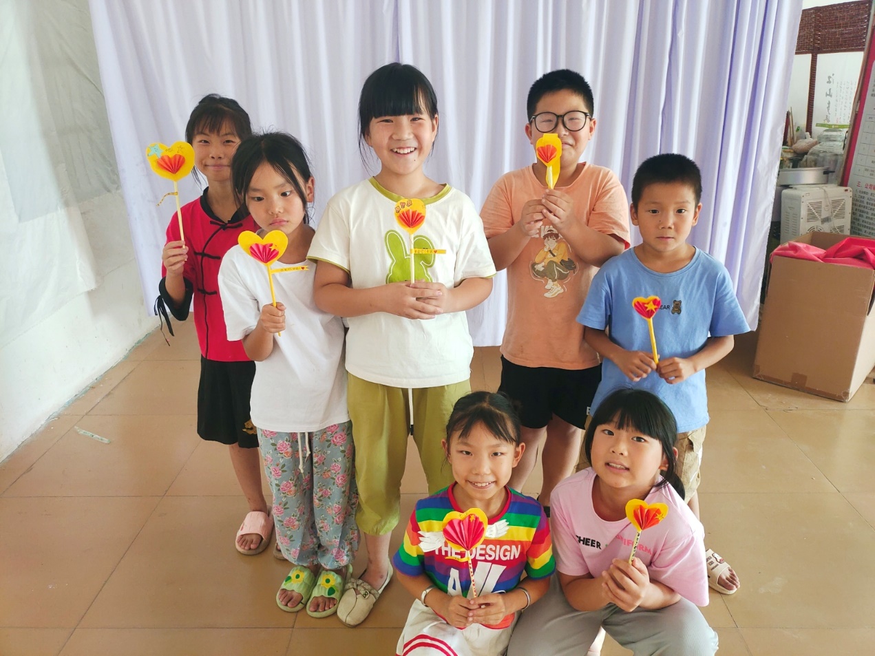 (通讯员 张雨涵)为关爱留守儿童,促进儿童认知能力的成长,培育儿童的基本美感,提升儿童动手能力。7月21日,湖北第二师范学院教育科学学院赴监利市四叶草青年志愿队第7分队在龚场镇浩宇制衣“希望家园”托管点对该点的儿童开展了以“趣味手工,童心向党”为主题的爱国主题手工制作活动。在活动中,志愿者带领儿童们按步骤制作爱心、五角星、细纸棒等物,以红色与黄色的党徽配色、以“我爱你中国!”和“我是中国人!”的热烈言语表达出对于祖国的热爱。儿童们在爱心棒上自由发挥,添加上“横条长标”、“萌趣星星”、“爱心贴纸”、“梦想翅膀”等富有意义的装饰物,每个孩子的创意都十分有趣,大家以不同的角度,共同表达出对于未来的憧憬和祖国的感情。活动最后,孩子们集体展示作品,以一首齐唱的“我爱你中国”将活动收尾。
