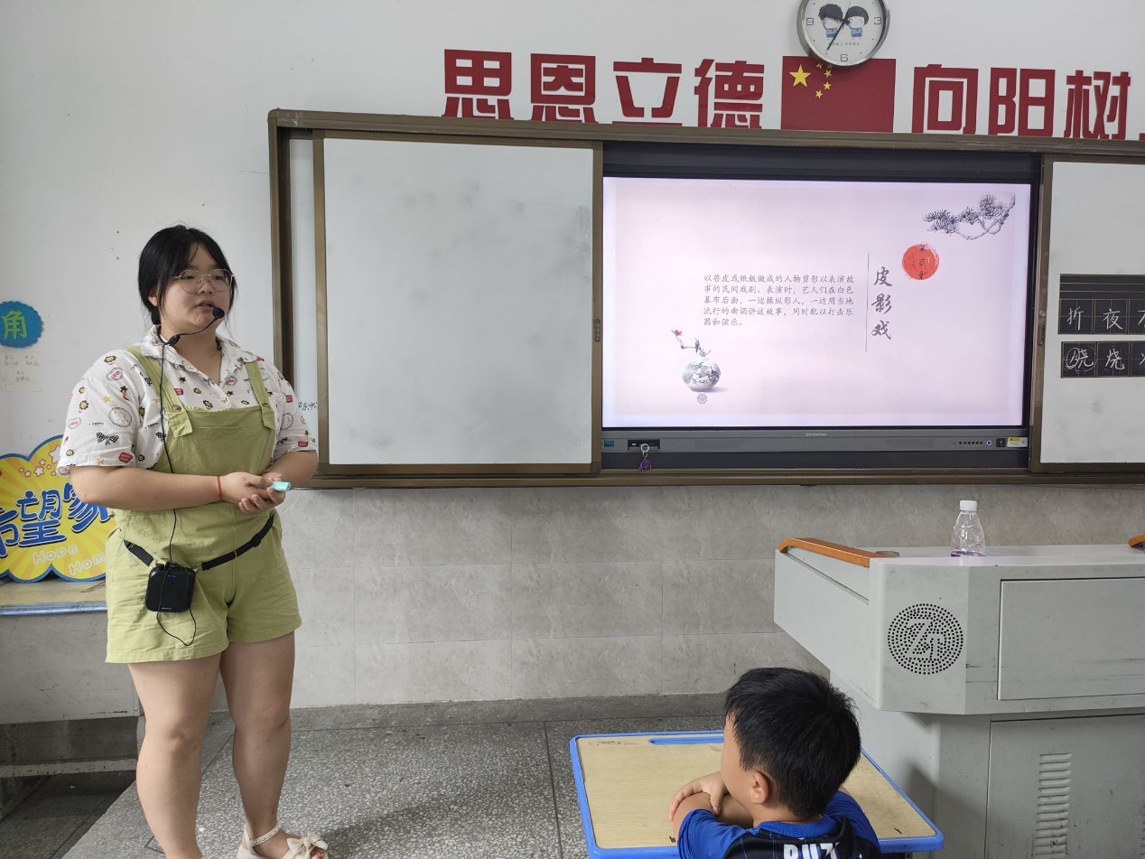 (通讯员 丁学莘)7月22日,四叶草青年志愿服务队第四分队志愿者在思源实验学校为学生们开展了一堂关于中国传统文化的特色课程,重点介绍了中国古老而独特的艺术形式——皮影戏。