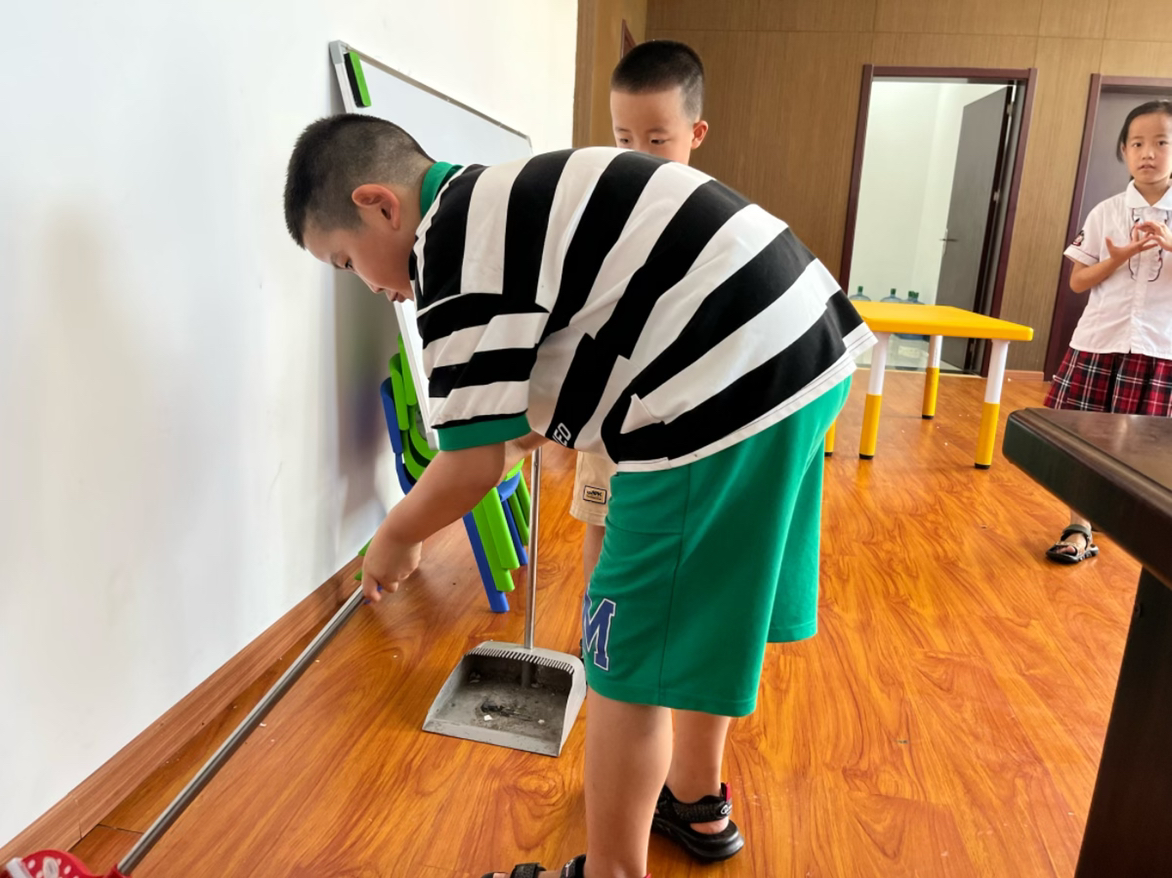(通讯员 韩蕊芯)从人的全面发展的角度,要求小学生德智体美劳全面发展,所以,在四叶草青年志愿服务队的支教中,大扫除也变成了一节特色课。随着早晨孩子们的陆续到来,志愿者小老师们开始组织孩子们打扫前一天搞乱的教室,孩子们都各自拿起了不同的工具,把教室仔仔细细的打扫了一遍。这样一节课,不但锻炼了孩子们的劳动技能,还加强了孩子们团队合作能力,在打扫卫生的时候互帮互助,也能在学习生活中相互学习。