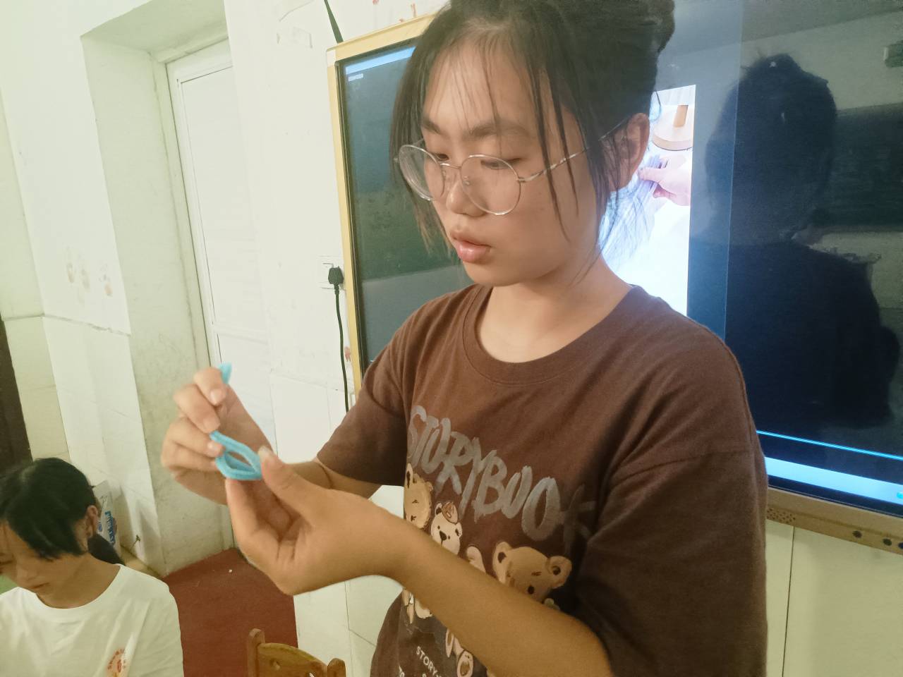 志愿者们先从花的组成部分开始教学,首先教学生们如何制作一片花瓣,整朵花是由一片片花瓣组合而成的,花的种类不同,它的花瓣形状、样式也不同,志愿者通过教学最基础的花瓣组成形式,由学生自己发挥想象,制作成不同的花瓣形式。在制作花瓣的过程中,学生遇到制作困难,志愿者也会单独辅导。其次再是教学制作叶子的过程,叶子的主要形式有两种,长形的叶子和圆形的叶子。从颜色的选择到花朵的制作,学生可以充分发挥自己的创造力,康乃馨、铃兰、郁金香……抛弃固有格局,可以用扭扭棒扭出他们自己的风格花束。