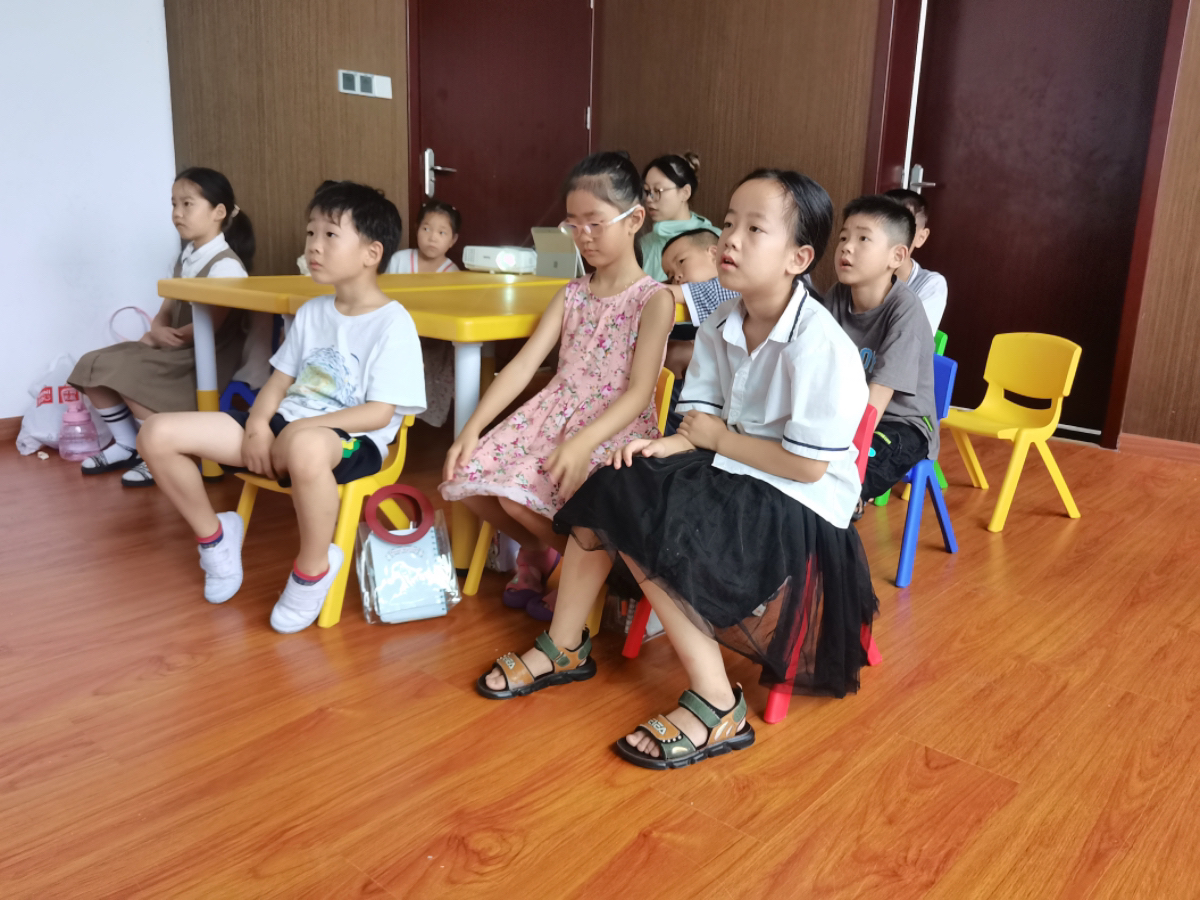 (图为小朋友们认真倾听志愿者老师的讲解)