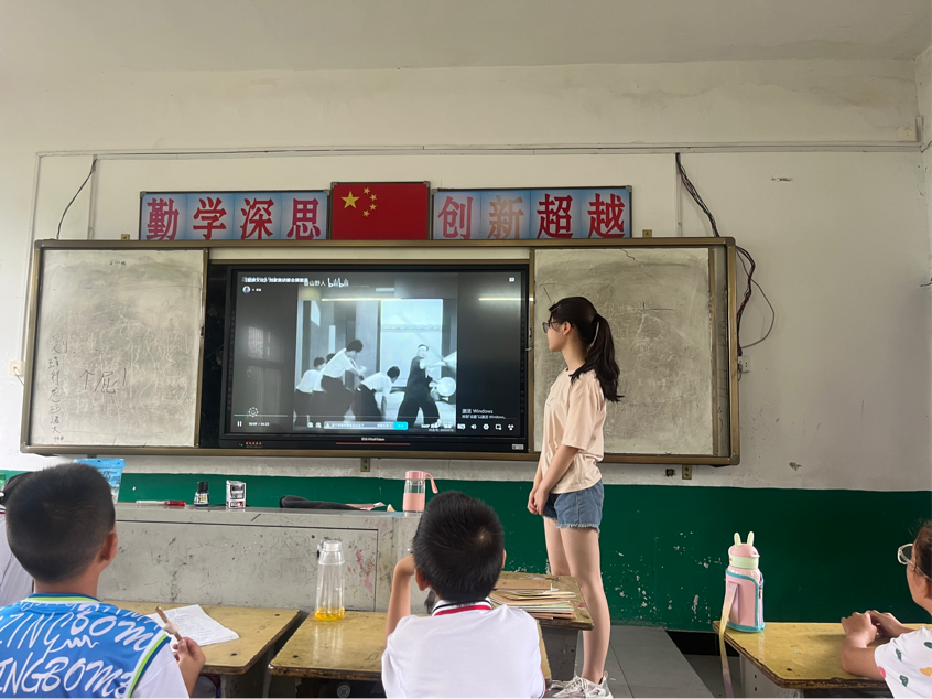 (图为志愿者给学生播放舞狮视频)