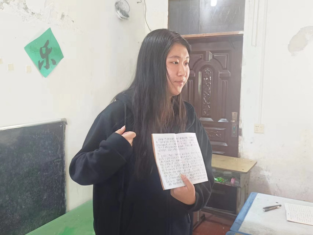 (图为四叶草青年志愿服务队第一分队志愿者黄萌萌为同学们讲解文章《红船,从南湖起航》)