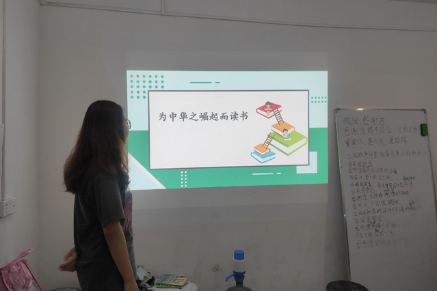 “为中华之崛起而读书”的含义是把个人的学习与民族振兴的大业联系起来,为祖国的兴盛和民族的振兴而学习、奋斗,做一个有理想、有道德、有文化、有纪律的高素质人才,为富国强民而不懈努力!学习这篇课文不仅是对以爱国主义为核心的民族精神的传承和升华,也是对以共产主义为核心的时代精神的体现和拓展,是激励人们奋发努力、不断进取的强大动力。在此目的下,志愿者们创设情境,疏通课题,交流资料,为学生快速进入文本做好铺垫。通过学生的言语实践,调动学生的学习兴趣,拉近学生与文本的距离,奠定情感基调。通过学习这篇文章,志愿者们引导学生阅读体验当时中国社会的贫穷落后,感受“中华不振”的沉重分量,感悟周总理说出“为中华之崛起而读书”的伟大志向与其“知行合一”的行动理念。