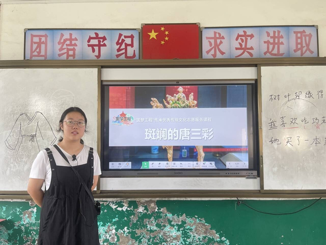 (通讯员 宋诗涵)唐三彩文物承载着盛唐历史,展现了千年之前的丝路文明,在中国文化中占有重要的历史地位。为引导留守儿童弘扬中国传统文化,坚定文化自信,丰富他们的假期生活。7月25日,湖北第二师范学院四叶草青年志愿服务队桃花小学分队志愿者带领学生们体会唐三彩的艺术之美,看见千年前的历史故事。志愿者通过知识讲解、视频欣赏等让学生们了解了唐三彩的历史起源、造型、制作方法等。在探索唐三彩颜色的奥妙时,志愿者强调:“唐三彩的釉彩有很多种颜色,但以”黄、绿、白三色为主,所以人们习惯称之为唐三彩。“为了让同学们更深入的感受唐三彩的艺术魅力,志愿者还准备了实践活动,让学生们自己挑选颜色,画一画唐三彩。学生们充分发挥自己的想象力,讨论颜色,精心描绘,一张张斑斓的唐三彩应运而生,教室充满了欢声笑语。“唐三彩“是中华优秀传统文化的重要组成部分。这次讲解,不仅激发了同学们对了解传统文化的兴趣,也增强了文化认同和文化归属感。