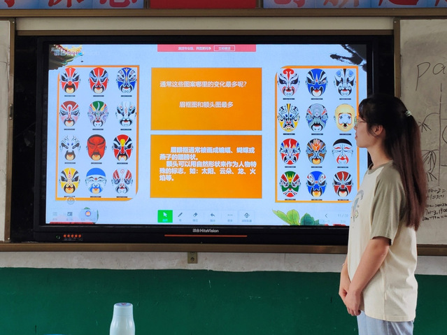 (通讯员 肖孟漪)为了提高学生对京剧脸谱相关知识的了解,培养学生热爱国粹京剧以及中国传统文化的情感,湖北第二师范学院四叶草青年志愿服务队在监利市分盐镇桃花小学开设“京剧脸谱”主题特色课。课堂上,志愿者首先带领学生欣赏一段京剧《闹天宫》,令学生感受剧院氛围,欣赏京剧经典片段,感受国粹京剧的魅力。然后志愿者借此提出问题——孙悟空的扮相属于京剧四大行当的哪个行当?由此志愿者向学生科普京剧四大行当。