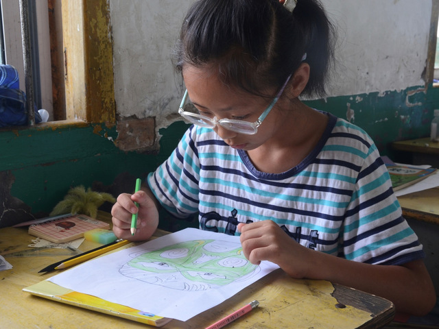 (图为学生画脸谱)