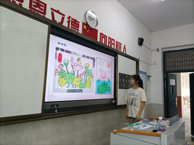 (通讯员 黎思)美术教育的意义在于培养学生的正确审美观,它能提高学生感受美、欣赏美、创造美的能力,帮助学生正确认识学习美术的意义,促进创造和技术技巧意识的形成,培养学生学习美术的兴趣,促进学生个性化和全面发展。7月25日上午,湖北第二师范学院四叶草青年志愿服务队志愿者于7月25日在监利思源实验学校教授美术课。志愿者借助多媒体辅助教学,让学生欣赏有关荷花的课件,使学生入情入境,培养审美情趣,感受荷花的美,学习荷花的品质。