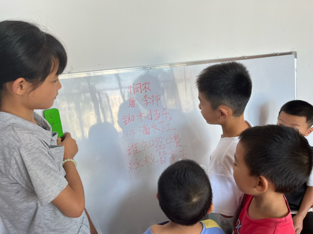 (通讯员 杨姝文)7月26日,湖北第二师范学院四叶草青年志愿服务队在荆州市监利市毛市镇浩宇本部开展了学习悯农,感受粮食之重的主题课堂。粮食对国防、国家稳定以及国民经济都有重要影响。作为国家的战略物质,粮食是人民的生活必需品,要把发展农业放在一切经济工作的首位。同时,粮食是粮农的重要经济来源,是工业产品的原料,充足的粮食供应对国民经济长期稳定发展意义重大。在课堂上,志愿者老师带领小朋友们一起深入学习我国有关粮食重要性的古诗——悯农,了解到了粮食对于我们每个人都具有极其重要的意义。