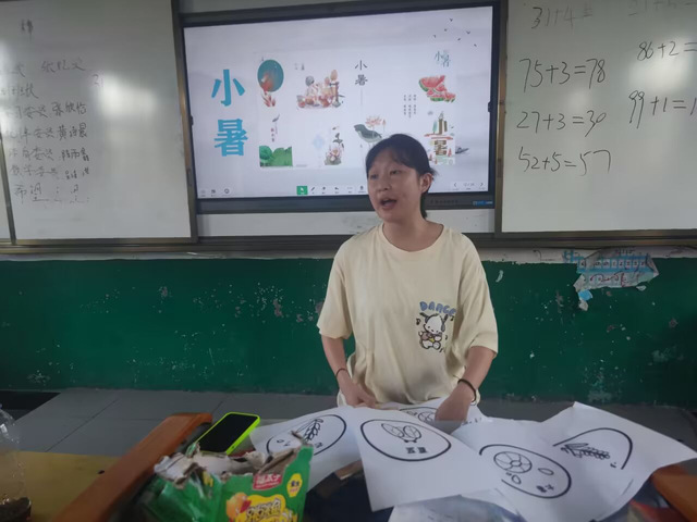 在课堂上,志愿者蔡贝贝从二十四节气的定义、内涵以及蕴含的民族意义三个方面向孩子们进行了解读,让孩子们对节气有了全面的认识。与此同时,志愿者还为小朋友们带来了二十四节气特有的图画让他们临摹创作,鼓励小朋友们充分发挥想象力和创造力,在实践中感悟中华传统二十四节气的魅力。