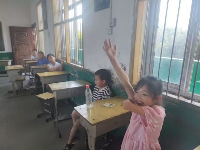 (图为小朋友们正在积极踊跃的举手回答老师的提问)