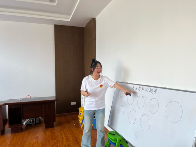 (通讯员 杨姝文)7月27日,湖北第二师范学院四叶草青年志愿服务队在荆州市监利市毛市镇浩宇本部开展了展开想象的翅膀,自由创作绘画的主题课堂。志愿者老师带领小朋友们一起利用充足的想象力进行想象和创作。在课堂进行的整个过程之中,小朋友们认真倾听志愿者老师的讲解,耐心跟随志愿者老师的引导,认真观看志愿者老师播放的相关视频,积极参与到课堂的互动交流之中。小朋友们不仅认识到了一个简单的图形可以变成多种多样的物品,而且还收获了对动脑能力的培养和提升。