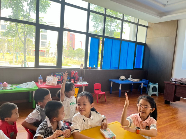 (图为小朋友们积极举手回答问题)