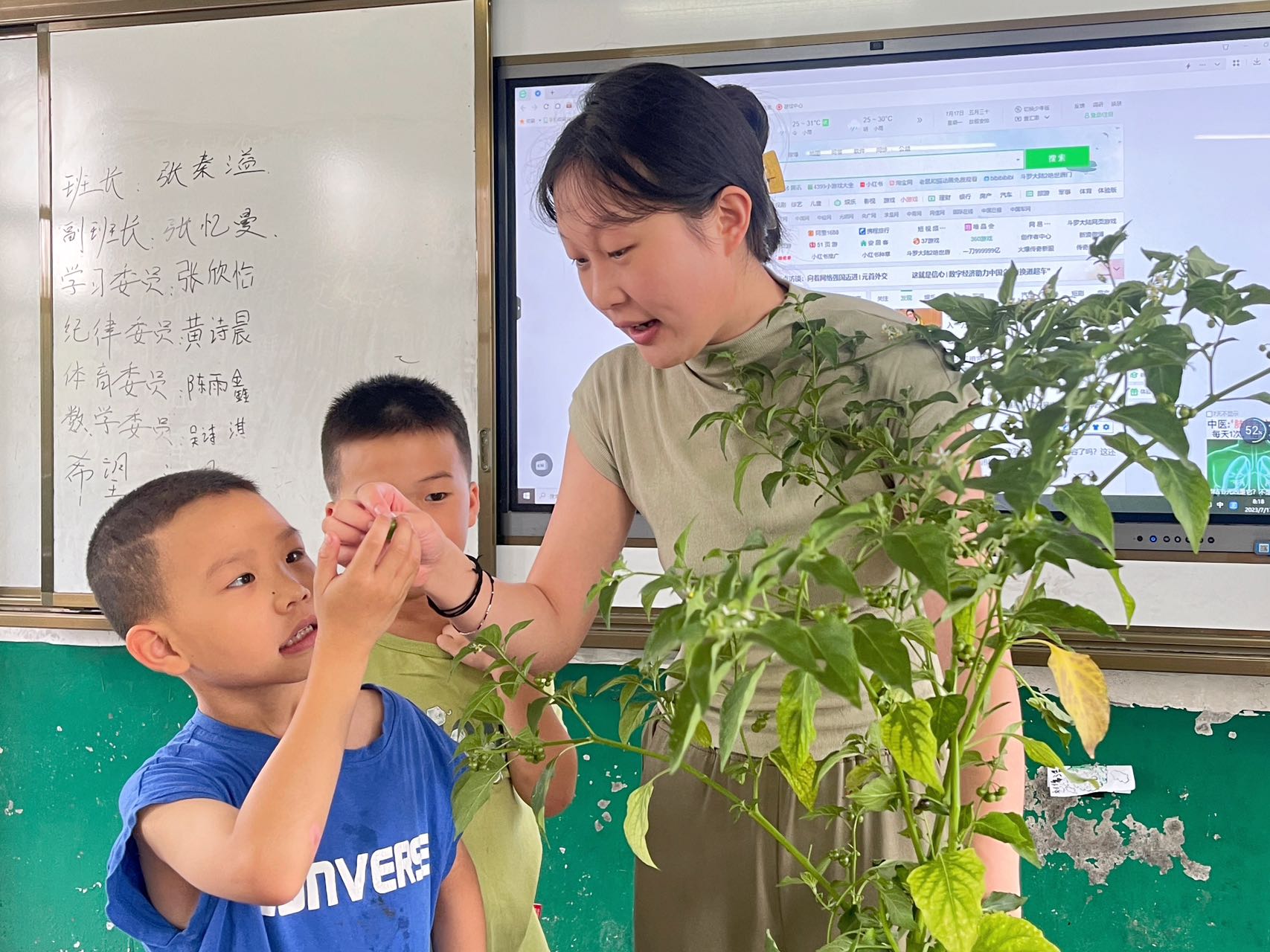 (通讯员 蔡贝贝)为让监利市分盐镇桃花小学的孩子们亲身体验大自然的奇特魅力,7月28日,湖北第二师范学院四叶草青年志愿服务队以“亲近自然,探索自然”为主题,在桃花小学一二年级开展了暑期“三下乡”社会实践活动。在课程伊始,志愿者带领学生们去教室外面收集各种各样的花草和树叶,通过志愿者的讲解让学生了解校园内各类植物的名称、生长过程、颜色、种类、......之后,将学生们分为若干小组,让他们相互分享自己的收获,相互观察对方的植物,在交流的过程中收获到更多关于植物的知识经验。