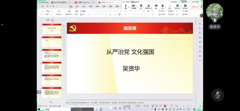 最后,乐三明书记针对坚定信仰、师德师风、家教家风、清廉政风等方面,给大家做了生动的微党课,吴贤华院长也做了题为《从严治党文化强国》的微党课。
