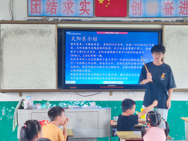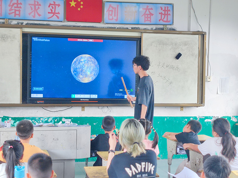 (通讯员 夏玉博)好奇是孩子们的天性。趁着暑假,学生能够接触新鲜知识,满足自己的求知欲。为了带领留守儿童探索知识,7月5日,湖北省第二师范学院四叶草青年志愿服务队来到分盐镇,开展为期27天的三下乡活动。支教期间,志愿者带领学生领略八大行星的奥秘。课堂上,志愿者先引入太阳系作为探索的主题,并向学生们展示了了行星的图片。在观看完图片后,学生们表现出极大的兴趣,他们投入地观察,通过白板所演示行星的运转轨迹,行星之间的相对位置和运行速度,来激发学生进一步探索的欲望。为了更好地培养学生们的思维和表达能力,志愿者鼓励他们积极参与讨论,提出问题,并记录下自己的疑惑和见解。学生们依次分享着自己的观点,彼此促进、互相启发。这种互动的氛围让整个课堂变得更加生动有趣。在课程结束时,学生们分享了自己的认识与感悟。他们依次站在教室前,用自己独特的语言描述着行星的特点和位置,以及对宇宙奥秘的探索与思考。从他们的眼神中透露出对知识的渴望和追求,让志愿者感到格外满足。课程结束,通过志愿者三下乡为留守儿童带去的特色课,孩子们的见识得到了提升。志愿者也通过自己的努力和奉献,为学生带来了充实的暑期生活,并帮助学生更好地成长。